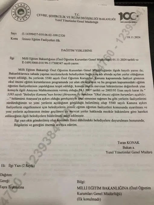 MEB’in gönderdiği genelge, belediyelerin “kreş adı altında anaokulu veya anasınıfı gibi eğitim faaliyeti yürütmesini” engellemeyi amaçlıyor. Genelgede, izinsiz eğitim faaliyetlerinin mevzuata aykırı olduğu ve kapatılması gerektiği vurgulanıyor. Ancak genelge, kreşlerin bakım hizmeti verme yetkisiyle ilgili herhangi bir düzenleme içermiyor.
